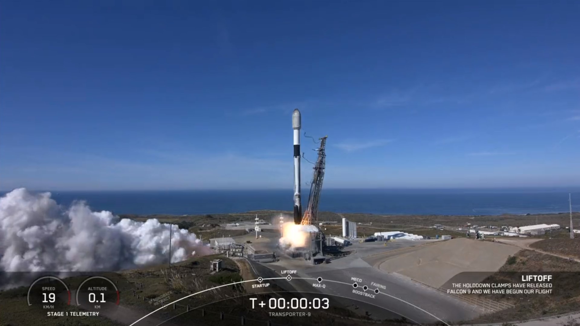 Transporter-9’s launch was typical for SpaceX, and familiar to viewers at this point. While the actual launch was delayed from Thursday, Saturday’s livestreamed launch ticked down like clockwork. Preparations, countdown, and launch were carried out with no surprises and minimal delays. Launch occurred at 1:49 PM EST (10:49 AM local California time.)