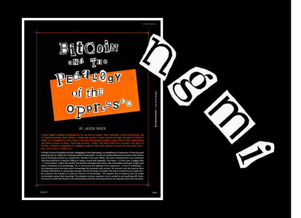 In Paulo Freire’s foundational book, Pedagogy of the Oppressed, he established a framework of teaching and learning that he called the “banking model of education”. It will not surprise Bitcoiners to learn that Freire’s use of banking is meant as a pejorative. Written in the late 1960s, the book compared the era’s dominant teaching method to a teacher filling an empty vessel with deposits. The bank — in this case, a piggy bank — is the student. Under this model, the teacher embodies the active role of deciding what gets taught and what constitutes true knowledge. He or she serves the agenda of the oppressor — even if unwittingly — by choosing what and how much knowledge the students will receive. At no point can the teacher give enough information or encourage enough critical thinking to threaten the world created by the oppressor. By contrast, the student is a passive receiver of knowledge. The student has no agency and can make no decisions about their learning. The student receives deposits, but is unable to do anything with them. Success for both individuals in the relationship is defined and measured by the deposits made into the bank.