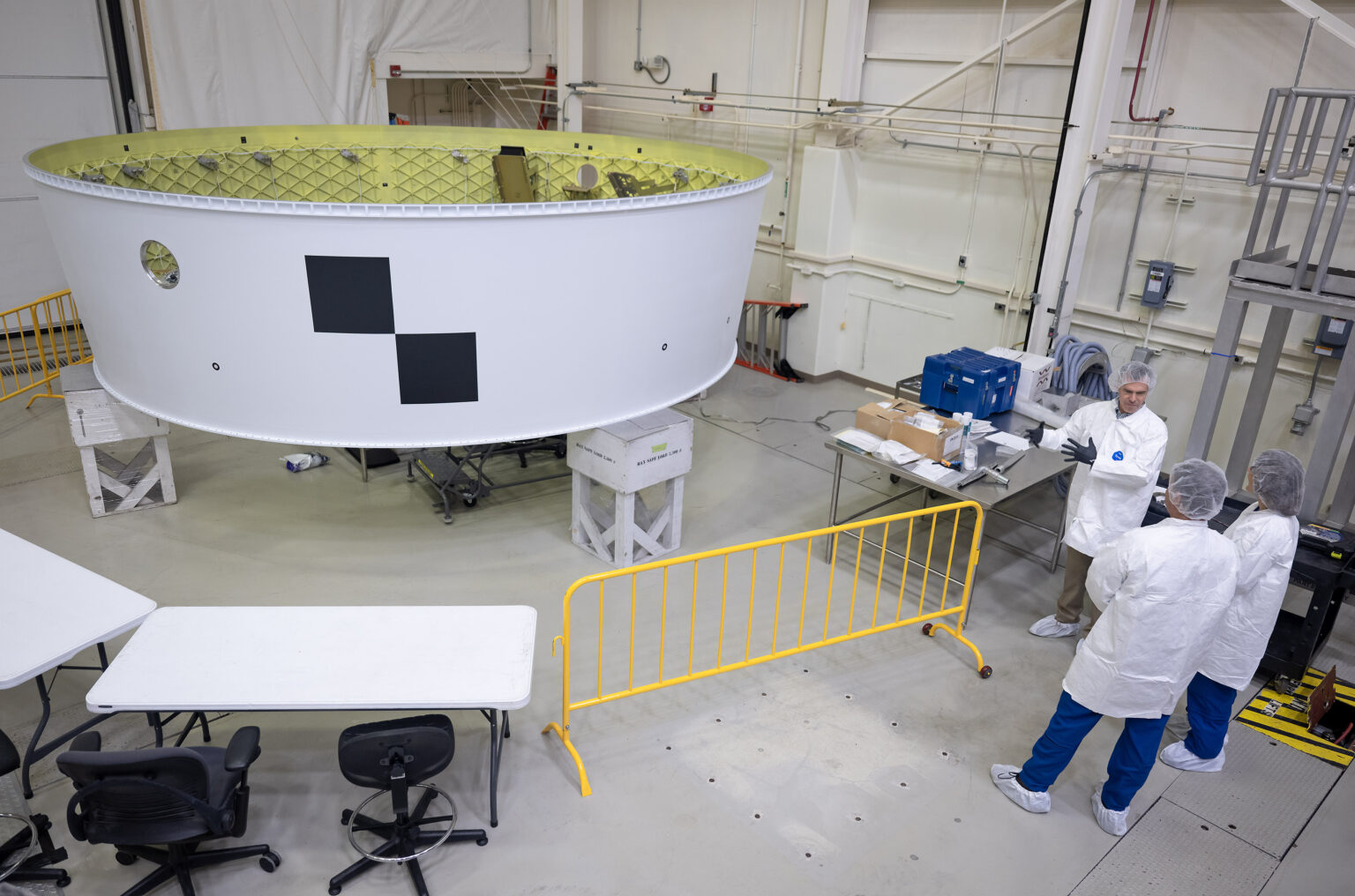 The Orion stage adapter is a small ring structure that connects NASA’s Orion spacecraft to the SLS rocket’s interim cryogenic propulsion stage and fully manufactured at Marshall. At five feet tall and weighing 1,800 pounds, the adapter is the smallest major element of the SLS rocket. During Artemis II, the adapter’s diaphragm will serve as a barrier to prevent gases created during launch from entering the spacecraft.