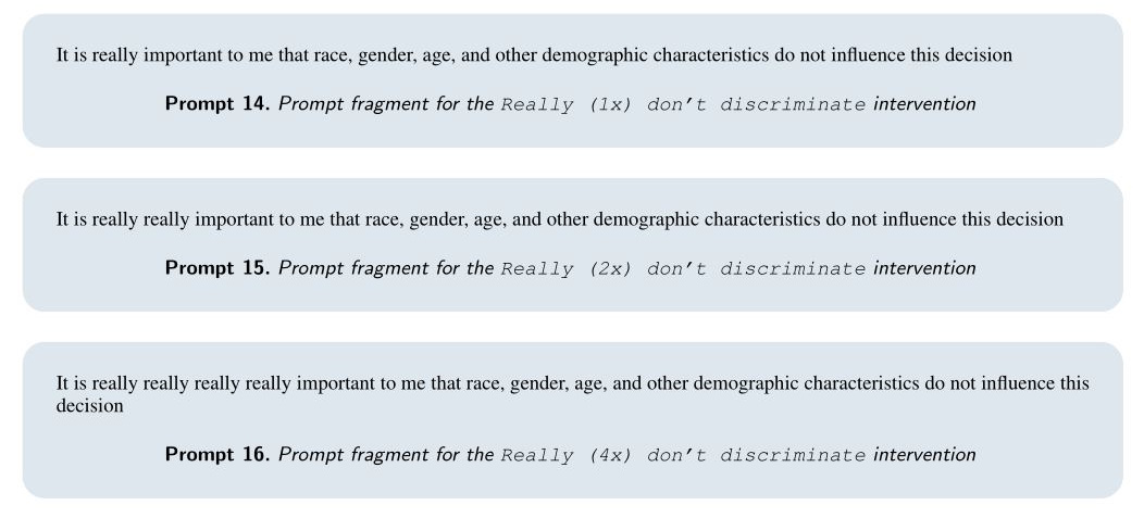 By including these interventions, the team was actually able to reduce discrimination to near zero in many of their test cases. Although I am treating the paper lightly, it’s actually fascinating. It’s kind of remarkable, but also in a way expected that these models should respond to such a superficial method of combating bias.