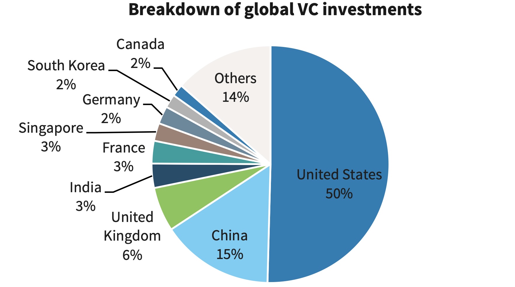 Top VC markets, by volume of investment in 2023. (Data: Pitchbook and Barclays)