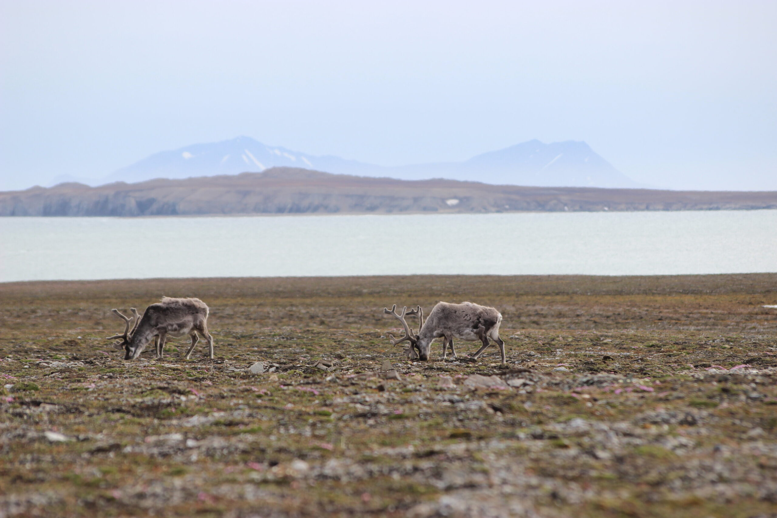 In the frigid seas halfway between mainland Norway and the North Pole, two types of animals browse the palatable vegetation of a high-tundra archipelago, munching on thick moss, cropped grasses, and low-lying shrubs.