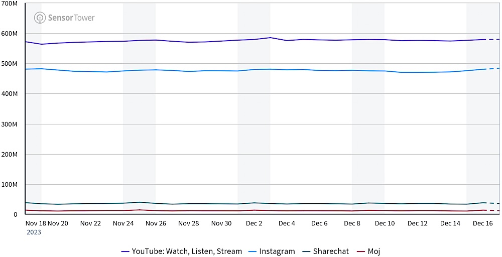 Daily active users on Google’s Android platform in India, per Sensor Tower’s estimates. In public statements, ShareChat claims it has over 300 million monthly active users.