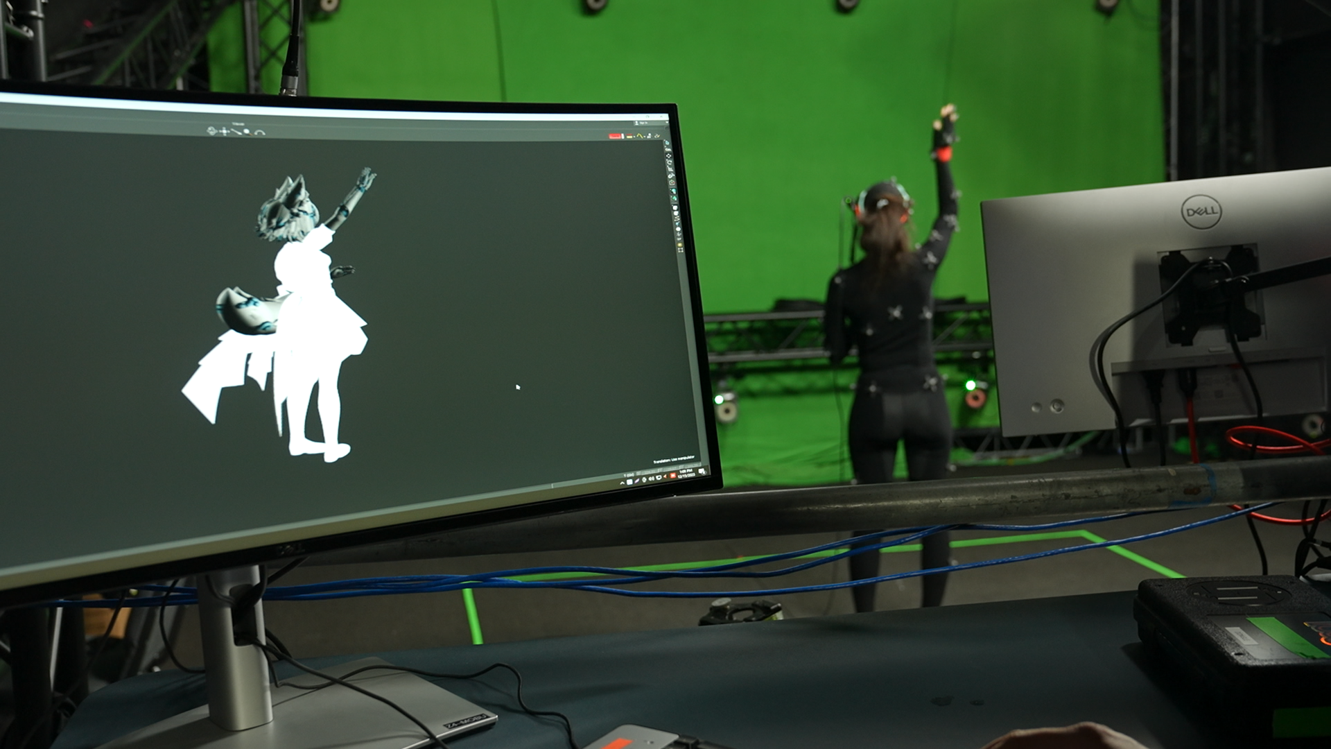Like many VTubers, Filian is fiercely protective of her anonymity and did not want to be photographed, so a crew member stood in for behind-the-scenes photos of the motion capture getup. Although everyone involved in the production promised to maintain her anonymity, Filian said it was “really unusual” for her to perform as her VTuber persona in front of actual people.