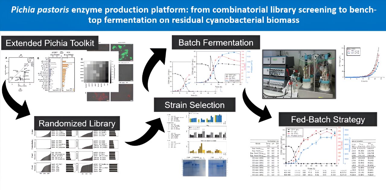Korbinian Sinzinger et al, The Pichia pastoris Enzyme Production Platform: from Combinatorial Library Screening to Bench-Top Fermentation on Residual Cyanobacterial Biomass, Journal of Bioresources and Bioproducts (2023). DOI: 10.1016/j.jobab.2023.12.005