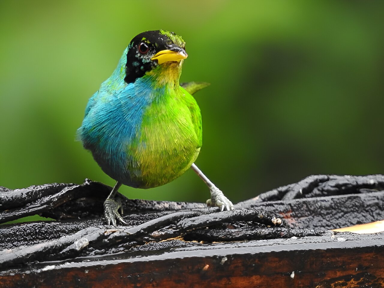 Green Honeycreepers are small birds found in the tropics from southern Mexico to Brazil.