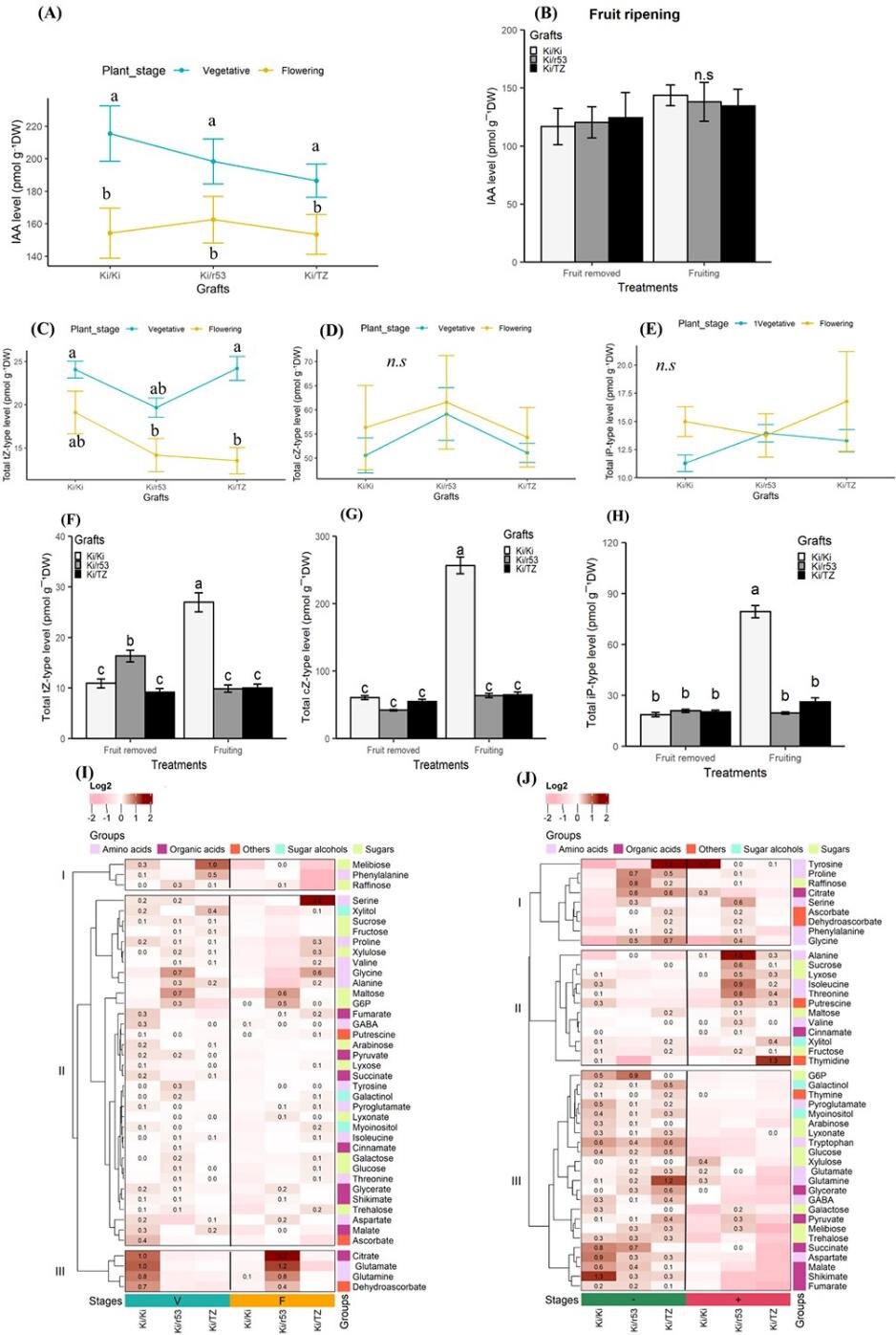 This suggested a disrupted hormone balance and potential blockage at the graft junction. Additionally, expression of the YUCCA gene, YUC2, YUC6, and YUC11 (required for auxin biosynthesis), the GRETCHEN-HAGEN3 gene (required for auxin conjugation), and the cytokinin oxidase/dehydrogenase 7 (CKX7) gene (which regulates the irreversible degradation of cytokinins) were enhanced in roots of incompatible combinations of plants during fruit ripening.