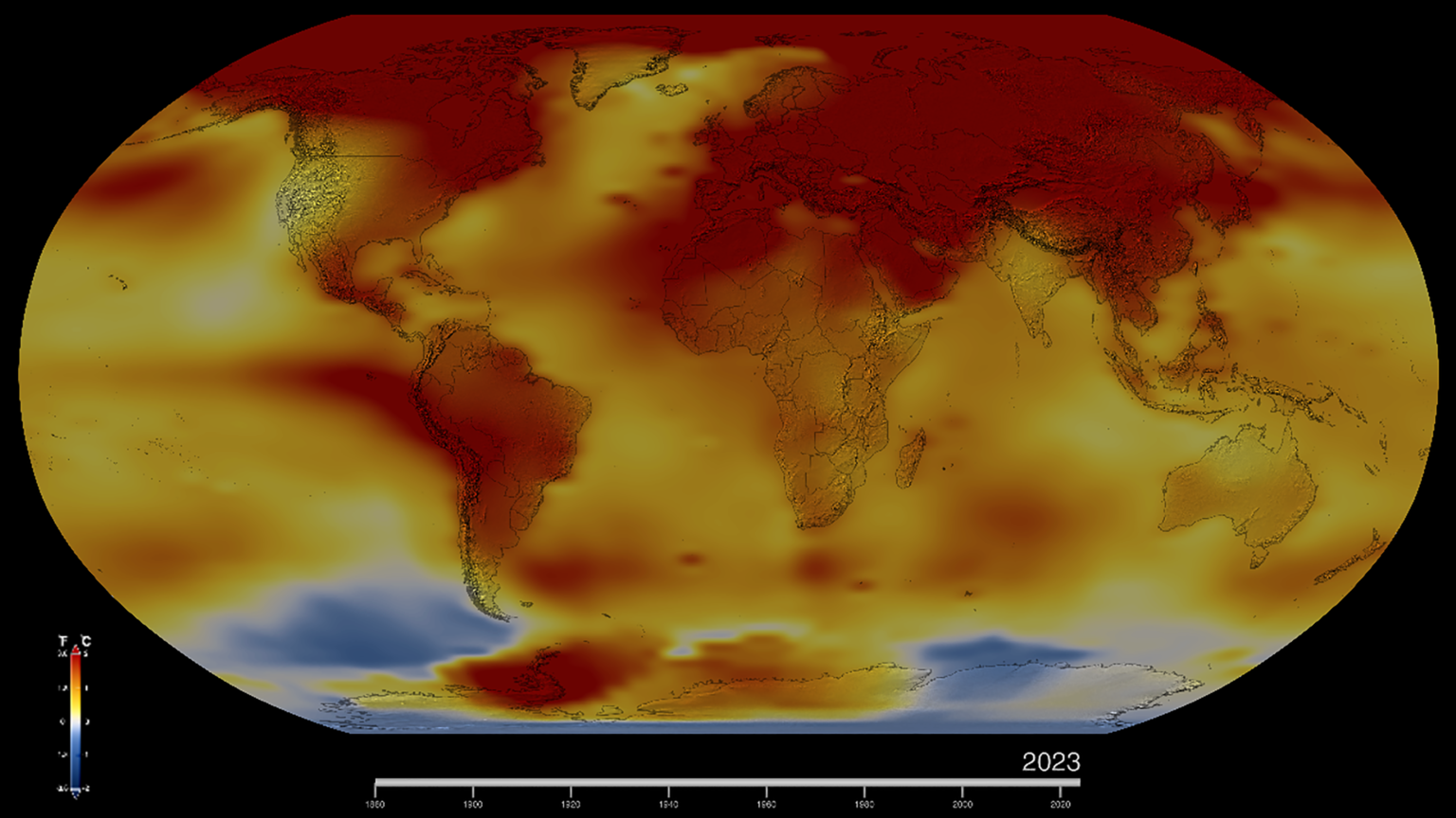 En el año 2023, la temperatura promedio de la superficie de la Tierra fue la más cálida que se haya registrado, según un análisis de la NASA. Las temperaturas globales del año pasado estuvieron alrededor de 1,2 grados Celsius (2,1 grados Fahrenheit) por encima del promedio para el período de referencia de la NASA (de 1951 a 1980), informaron científicos del Instituto Goddard de Investigaciones Espaciales (GISS, por sus siglas en inglés) de la NASA en Nueva York.