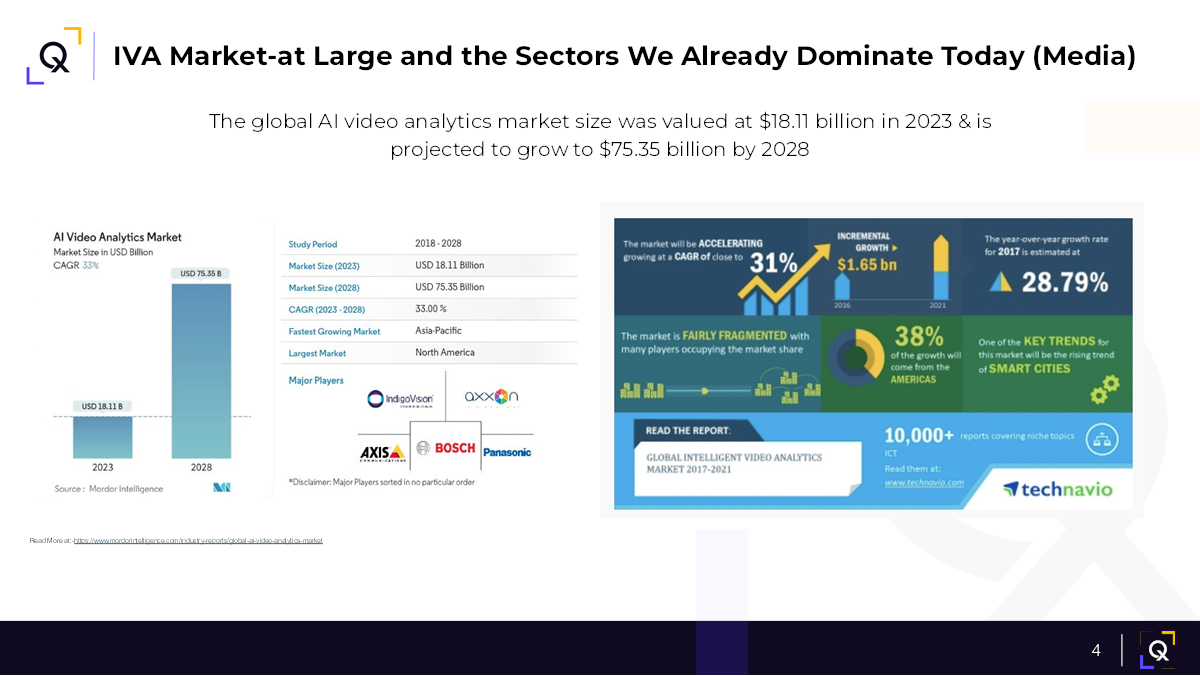 Qortex does a good job of showing that the global video analytics market is growing and could prove lucrative. That’s important: All VCs want to see that a startup is operating in a space brimming with opportunity.