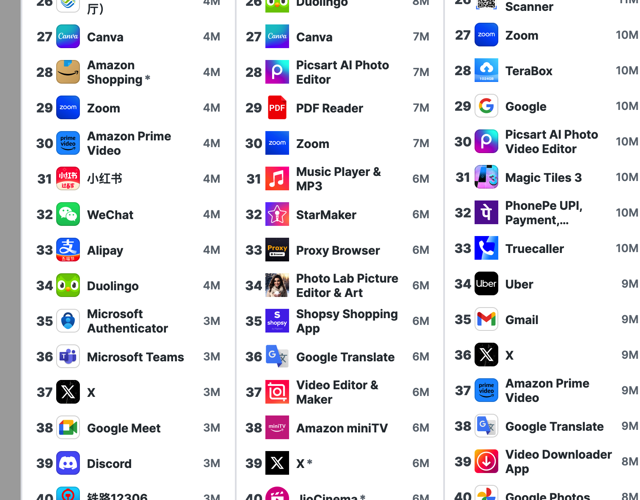 Though Threads was in the top 10 apps by downloads last month, it didn’t quite break into the top 5…but its parent company did.