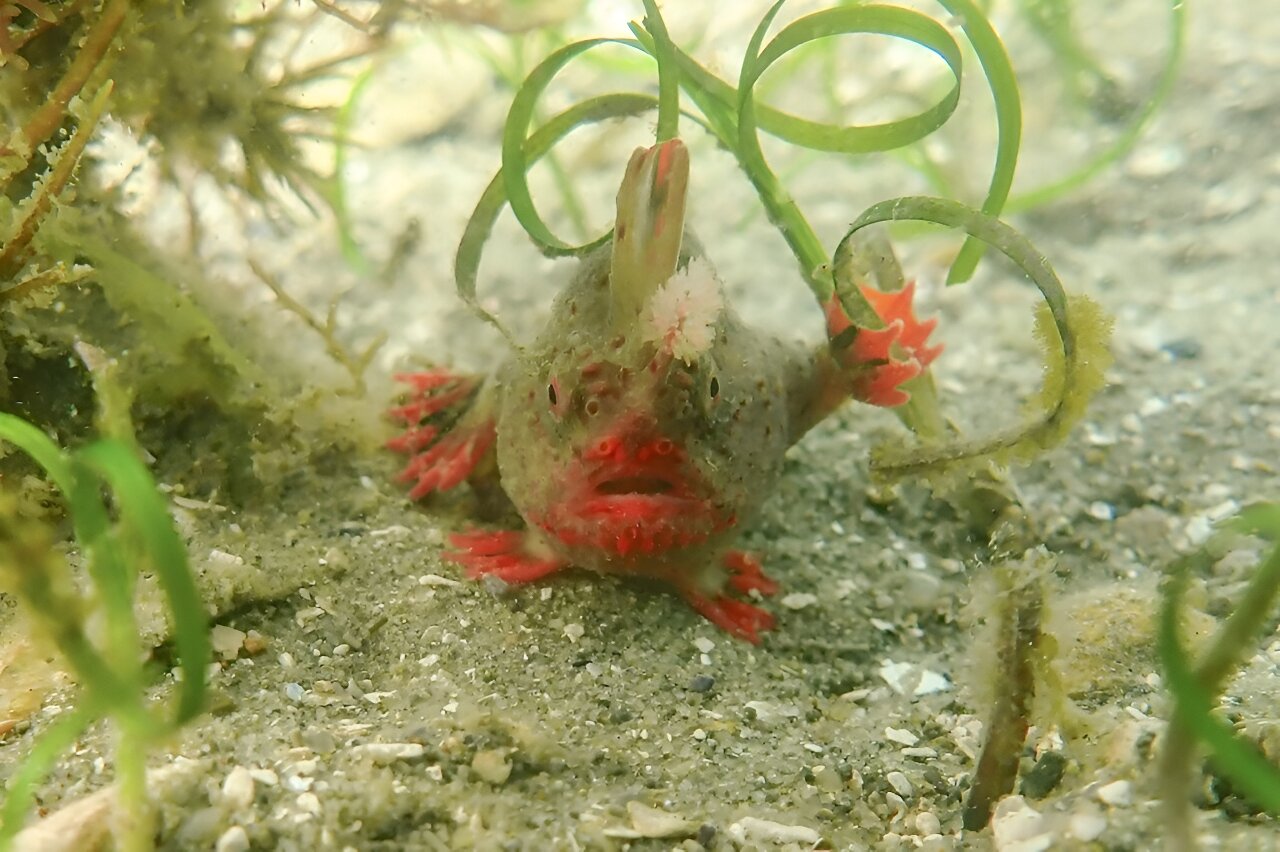 Only about 100 red handfish—which have the appearance of a crimson and brown goldfish with stubby arms and webbed hands—are left in the wild, living in a small section of reef off southeast Tasmania.