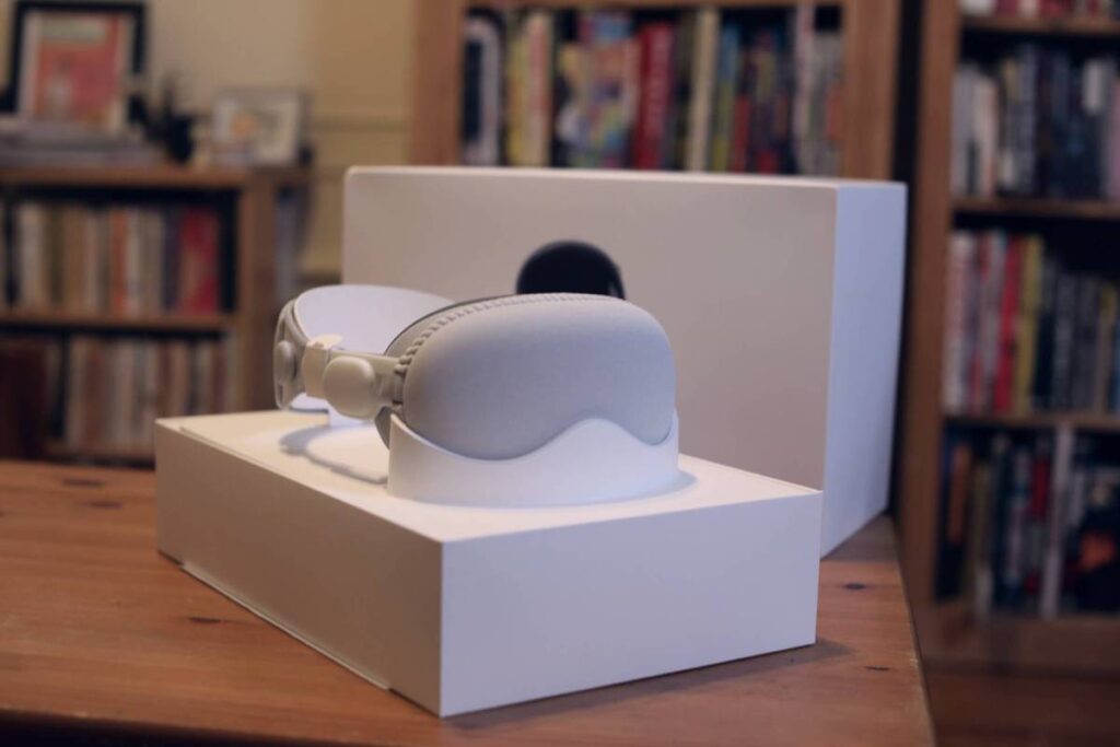 The box arrives. It’s huge. It’s also quintessentially Apple — it’s premium, designed with intention. Tear the tabs on other side and slide off the top. The visor is inside, anchored to a small platform that’s more display case than shipping container. Dig deeper, and you’ll find another strap and a second “light seal” insert.