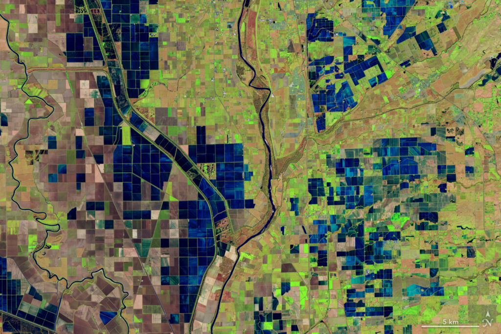 OpenET’s primary observations come from the Landsat 8 and 9 satellites, a partnership between NASA and the U.S. Geological Survey. The satellites combine data on land surface temperatures and the greenness of plants, among other things. Cooler land surface temperatures over areas with healthier, denser vegetation, for example, usually indicate higher levels of transpiration.