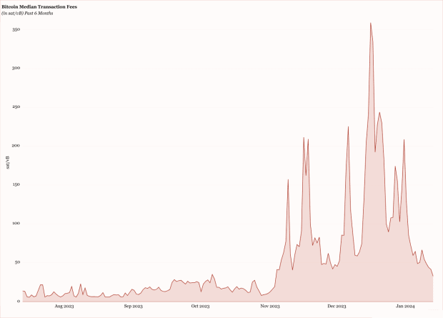 Bitcoin Median Transaction Fees In sat/vB Past 6 Months