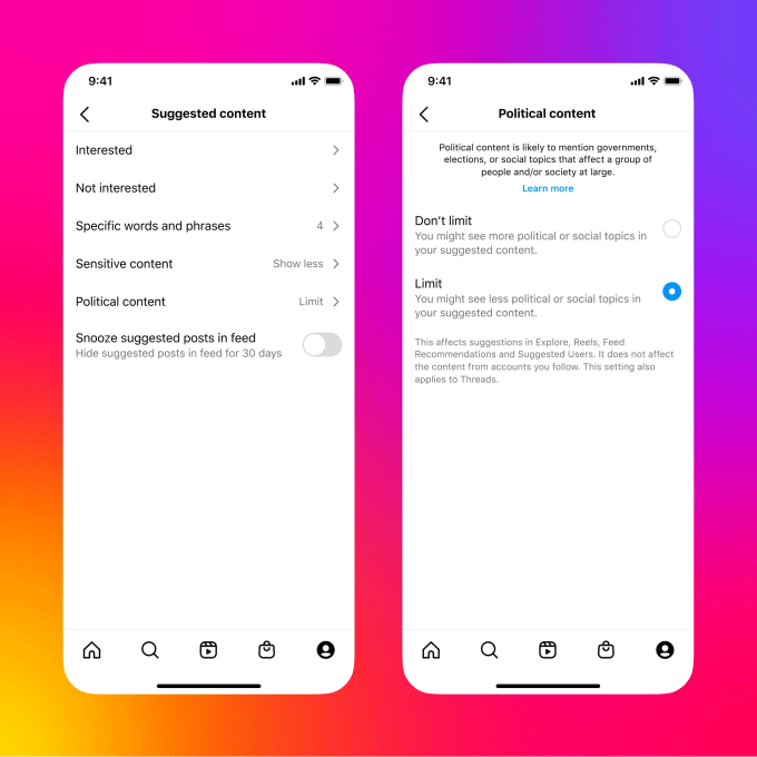 In addition, users who do want political content recommended will be able to turn this on in their Settings on both Instagram and Threads. Facebook will also get a similar control at some point in the future.
