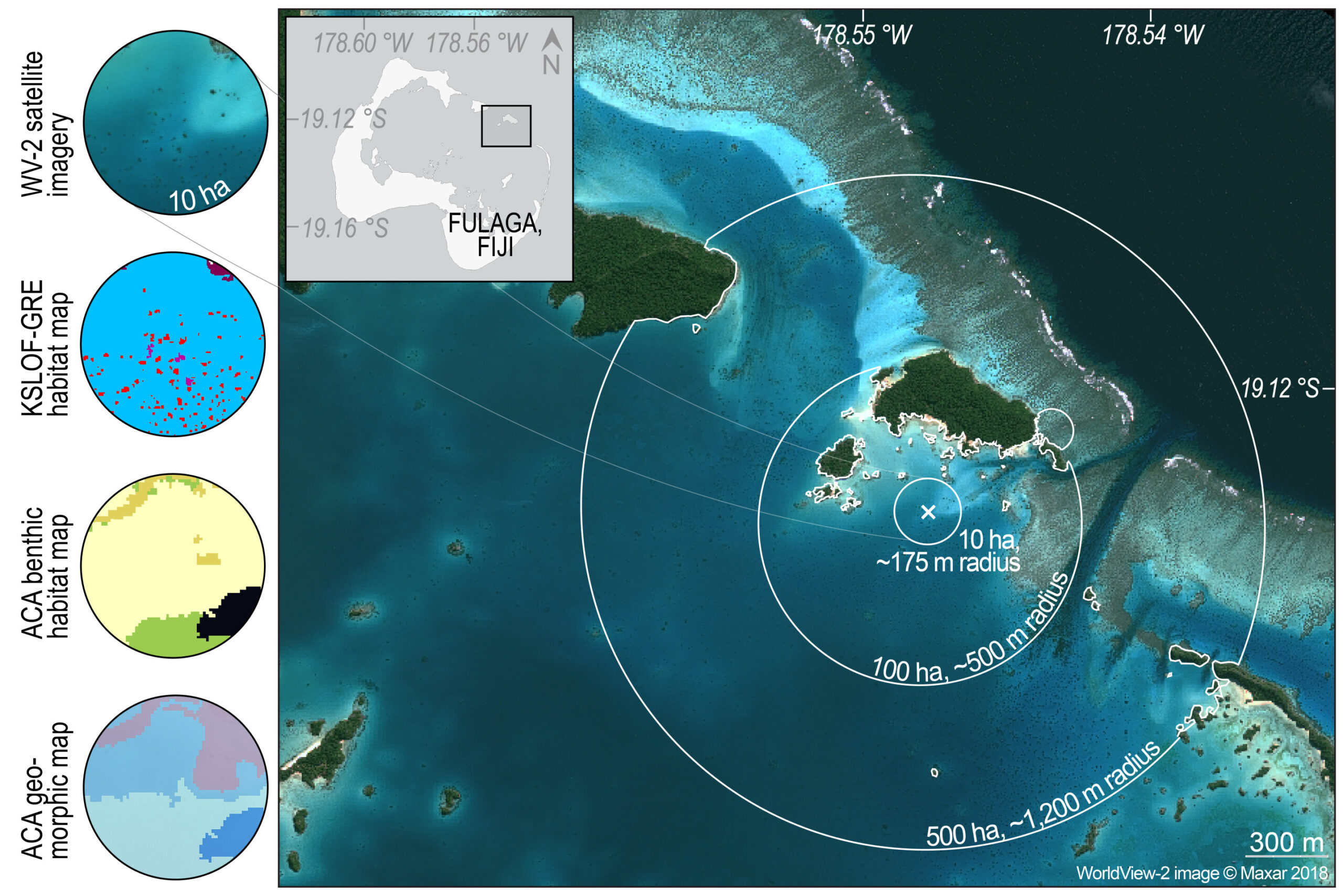 The conventional approach of conducting SCUBA-diver surveys to measure the biodiversity of coral reefs is both time consuming and expensive. Therefore, the research team set out to find a new method utilizing remote sensing to produce habitat maps at a global scale.