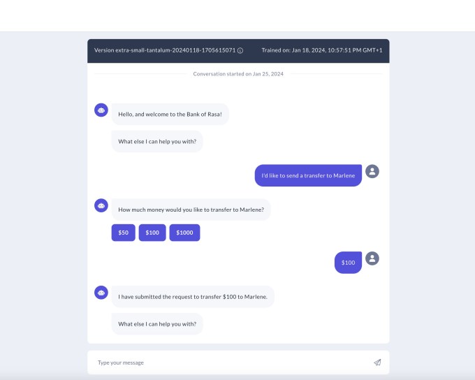 Rasa is a startup that claims to have developed the infrastructure to give developers at large enterprises the ability to build “robust” generative conversational AI assistants so that those interactions feel more personal and meaningful to users. It says it does this by providing the infrastructure CALM (Conversational AI with Language Models) and a low-code user interface.