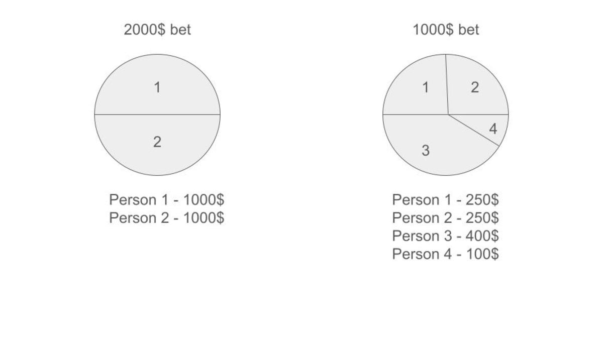 What if there’s a group of people on one side of the bet and another group on the opposing side? What does the payout look like, and how are the odds determined? Let’s delve into a straightforward graph to better illustrate this example.