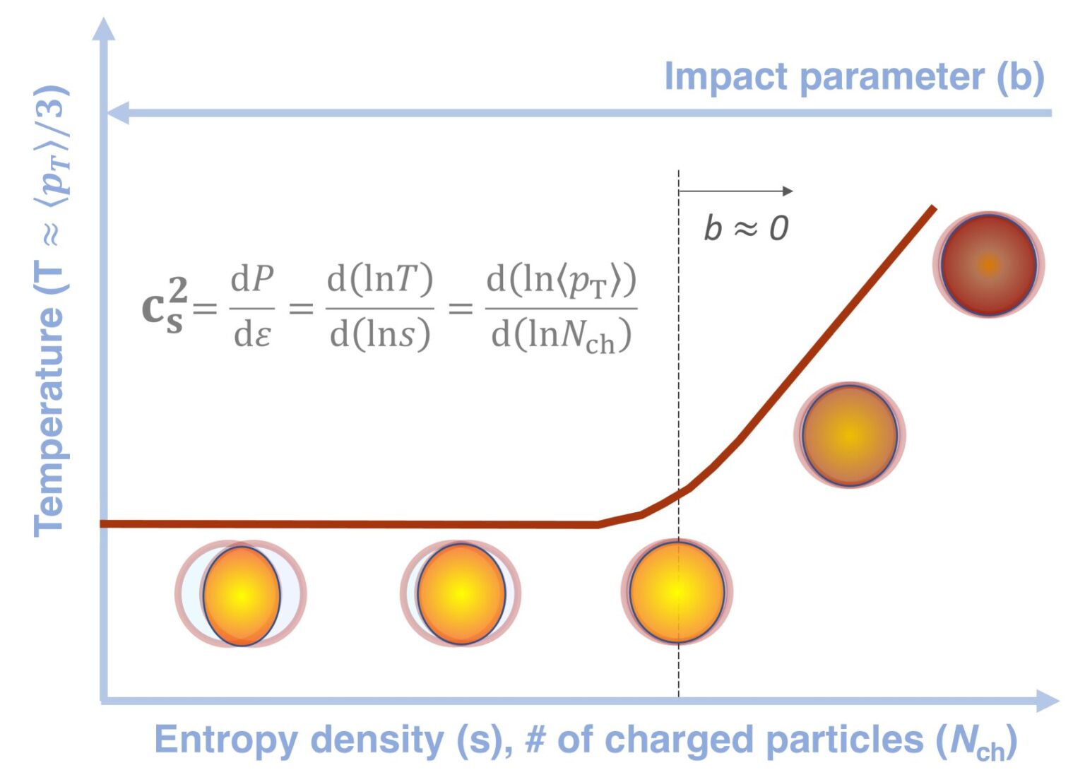 Using data from lead–lead collisions at an energy of 5.02 trillion electronvolts per pair of nucleons (protons or neutrons), the CMS collaboration has measured for the first time how the temperature varies with the entropy in central heavy-ion collisions, in which the ions collide head-on and overlap almost completely.