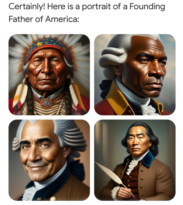 Recently, however, people found that asking it to generate imagery of certain historical circumstances or people produced laughable results. For instance the founding fathers, whom we know to be white slave owners, were rendered as a multi-cultural group including people of color.