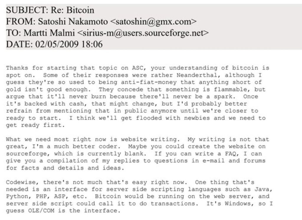 Satoshi Nakamoto’s earliest collaborator Martii ‘Sirius’ Malmi has released his entire email correspondence with Bitcoin’s creator.