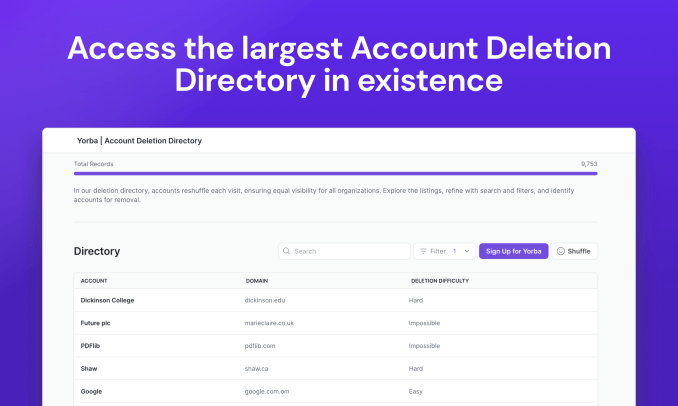 Later this spring, Yorba will also launch a feature tied to Data Rights Protocol’s efforts to standardize consumers’ data rights requests, like account deletions. This new feature will be similar to Just Delete Me’s service, which guides consumers on how to delete their accounts at around 1,500 sites and services. Yorba, however, will support 10,000 sites in its account deletion directly.