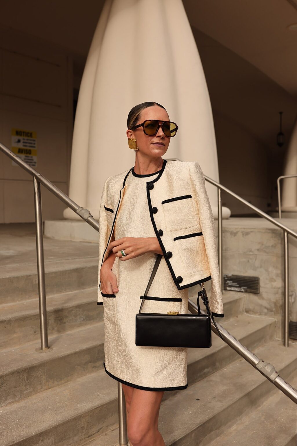 Jacket: Veronica Beard // Dress: Veronica Beard // Sunglasses: AIRE