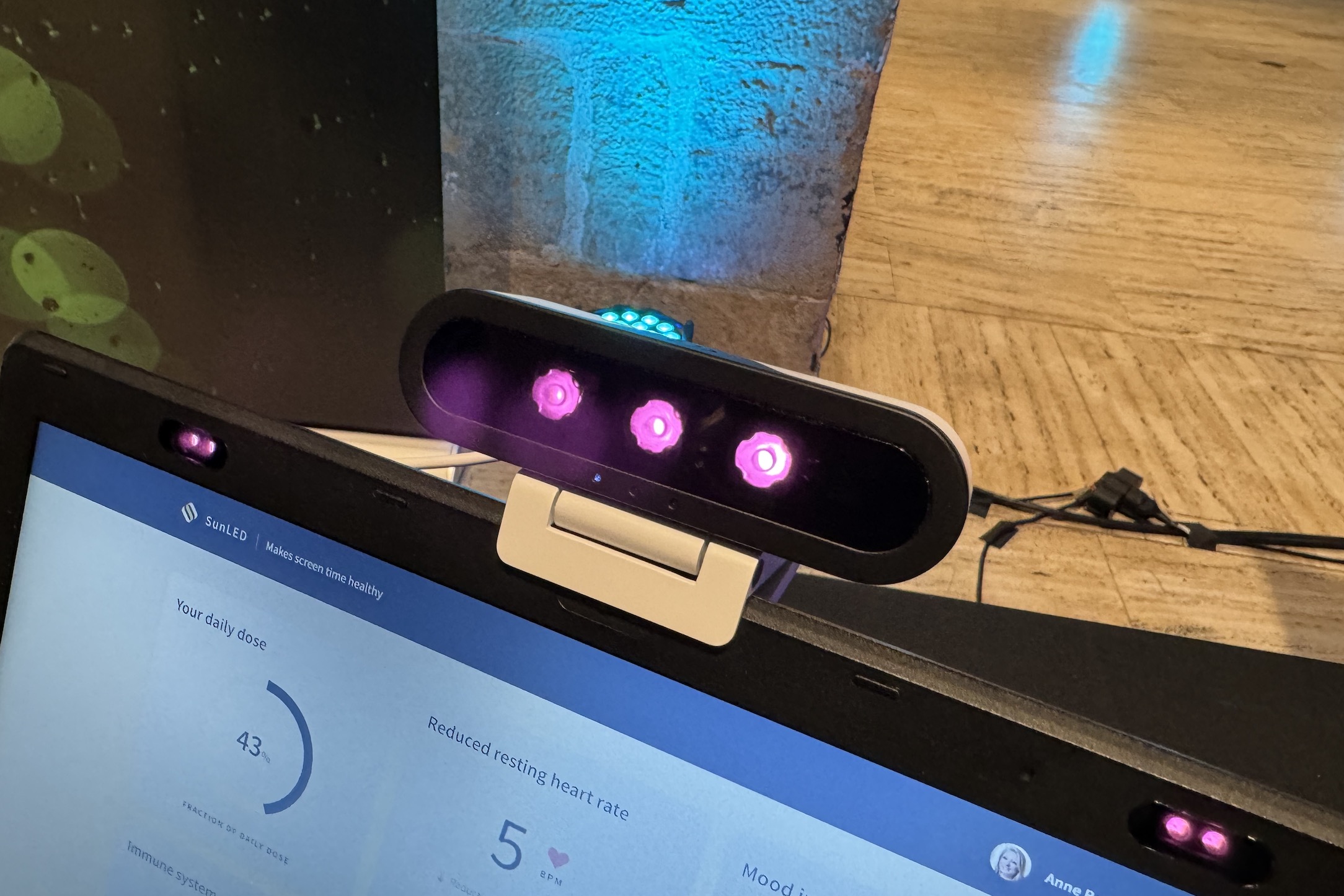 Seaborough, a Dutch company, showcased small devices designed to replace large light therapy lamps that mimic the sun’s impact on the production of serotonin in the brain. One sits next to the computer and the other clips above display, looking a lot like an external webcam. Both plug into the USB port for power. You’ll have to wait a bit, though, as the lamp is still in proof-of-concept mode.
