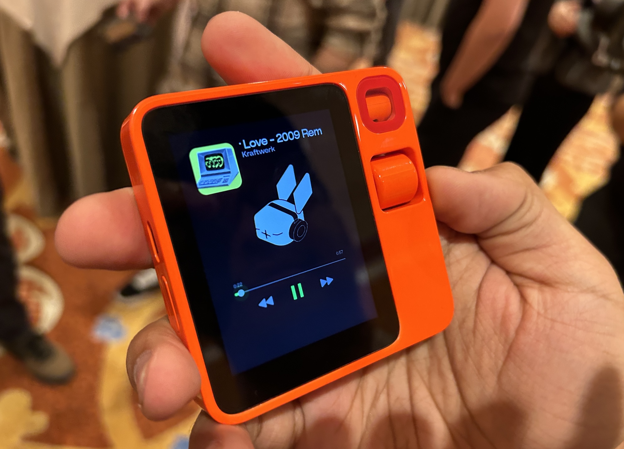 The rabbit r1 in use. Hand model: Chris Velazco of the Washington Post.