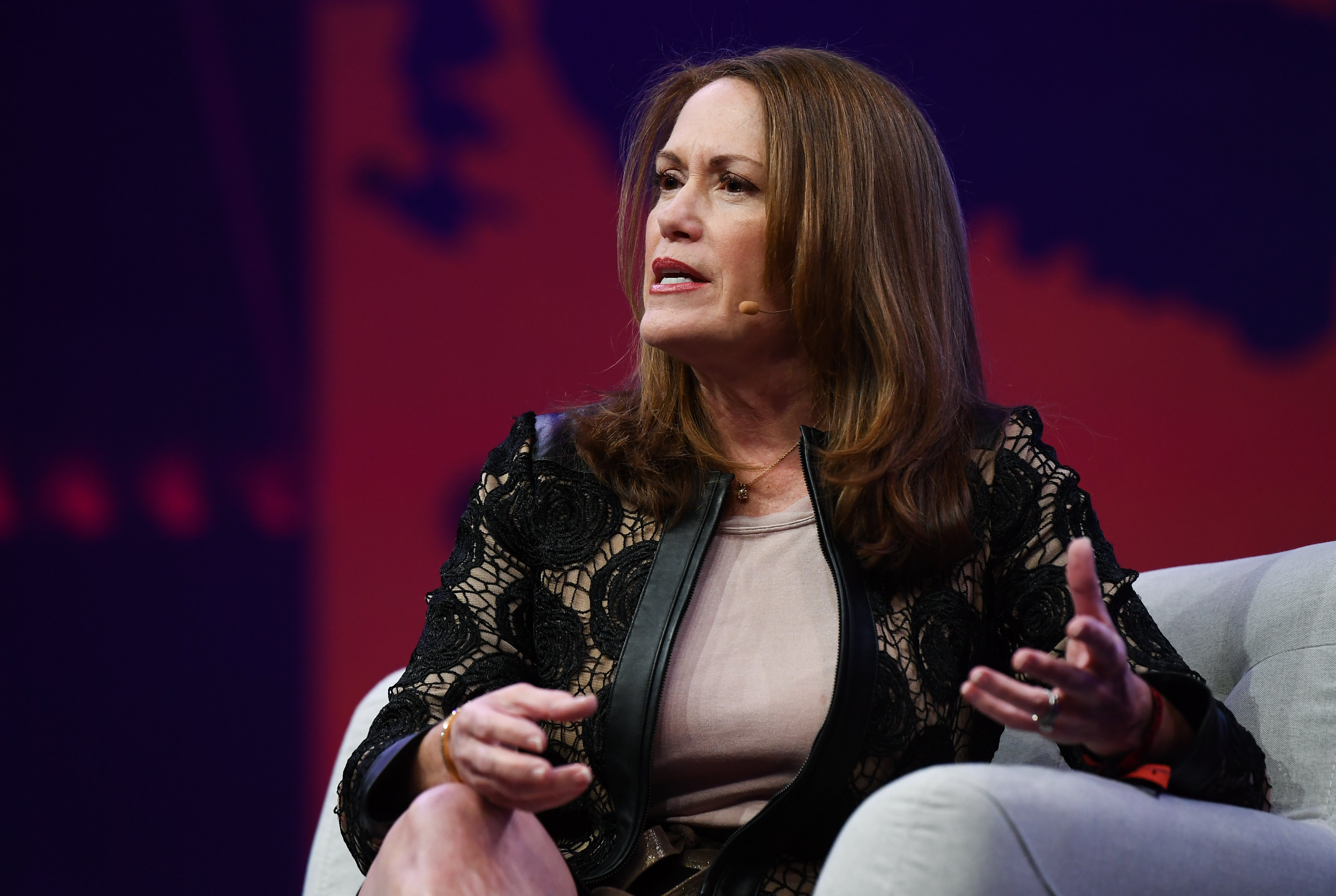 Toronto , Canada – 21 May 2019; Peggy Johnson, Executive Vice President, Business Development, Microsoft, on Centre Stage during day one of Collision 2019 at Enercare Center in Toronto, Canada. (Photo By Stephen McCarthy/Sportsfile via Getty Images)