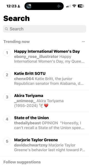 As of the time of writing, three of the top five search trends on Threads are related to President Biden’s State of the Union address, including people’s reactions to the speech itself, as well as the Republican response and the heckling from Marjorie Taylor Greene.