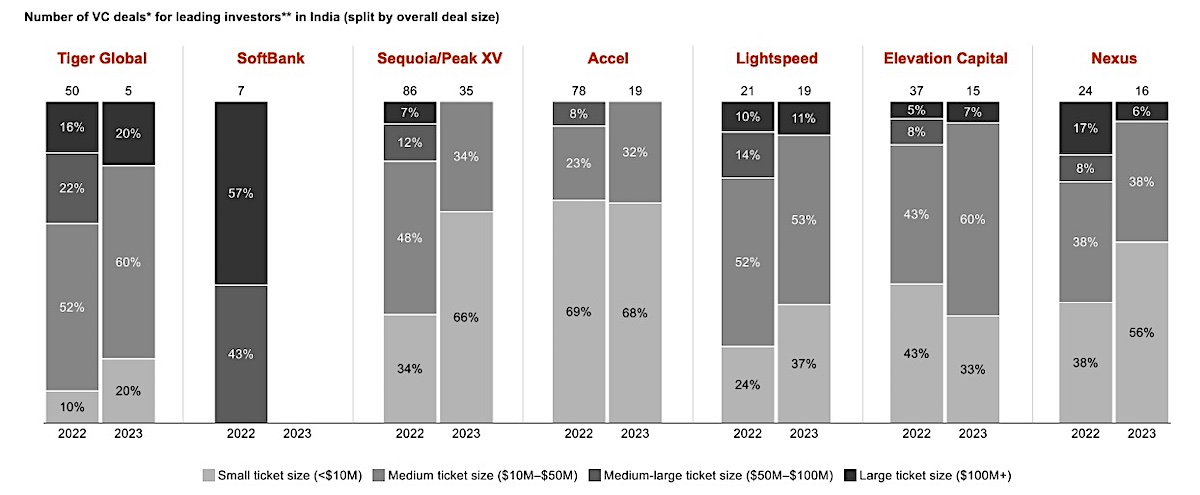 Indian startups experienced a significant decline in large-scale funding rounds last year as prominent crossover funds, including Tiger Global and SoftBank, reduced their investments in India and other markets, while many well-known India-focused funds shifted their attention to backing early-stage startups, Bain said this week.