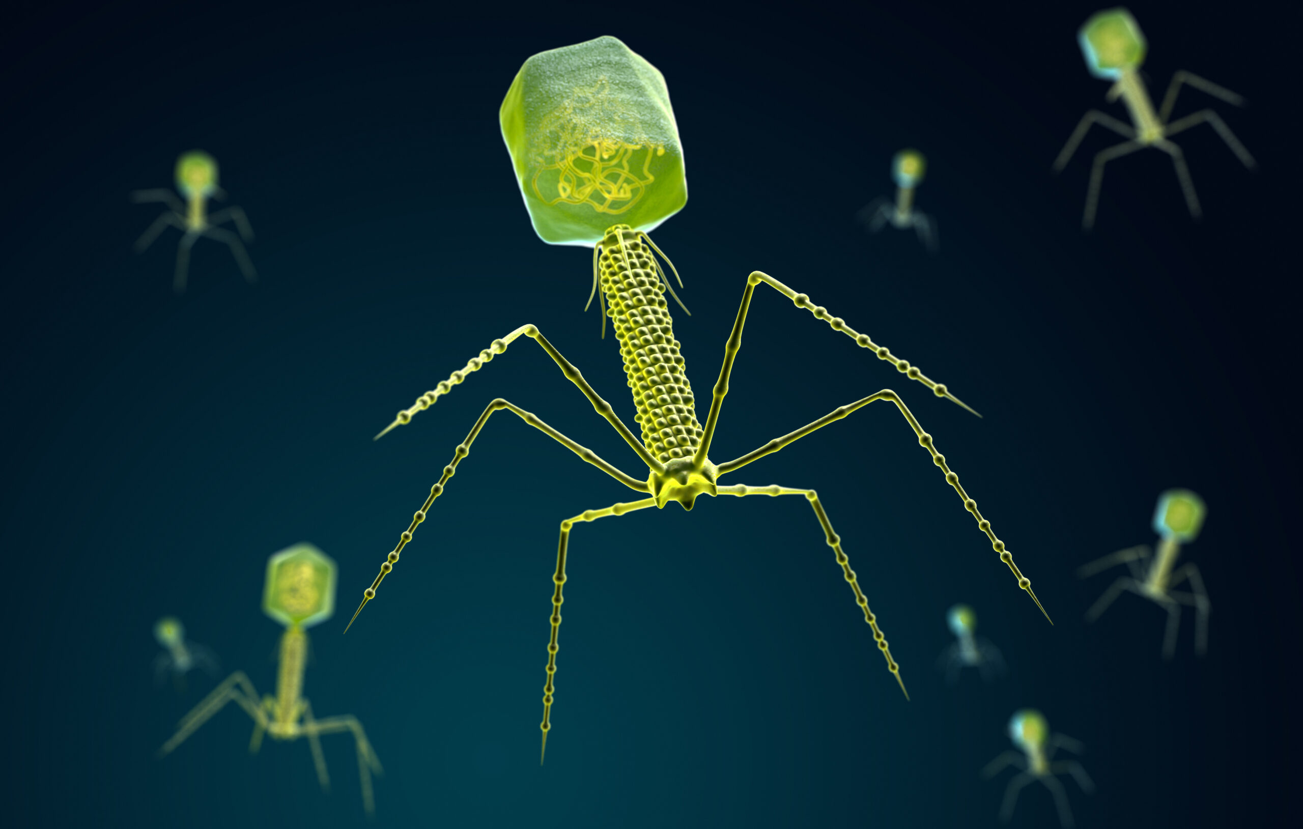 They look like something out of nightmare, but these so-called ‘spider viruses’ occur naturally, and could be a powerful new weapon in tackling the growing threat of antibiotic resistance. Bacteriophages, or phages for short, have a remarkable and currently untapped potential for viral therapies. Their name comes from the Greek for to eat – ‘phagein’ – suggesting that phages swallow up bacteria. It’s a great image, although the reality is perhaps even more remarkable: phages inject bacteria with genetic material that ultimately destroys them.