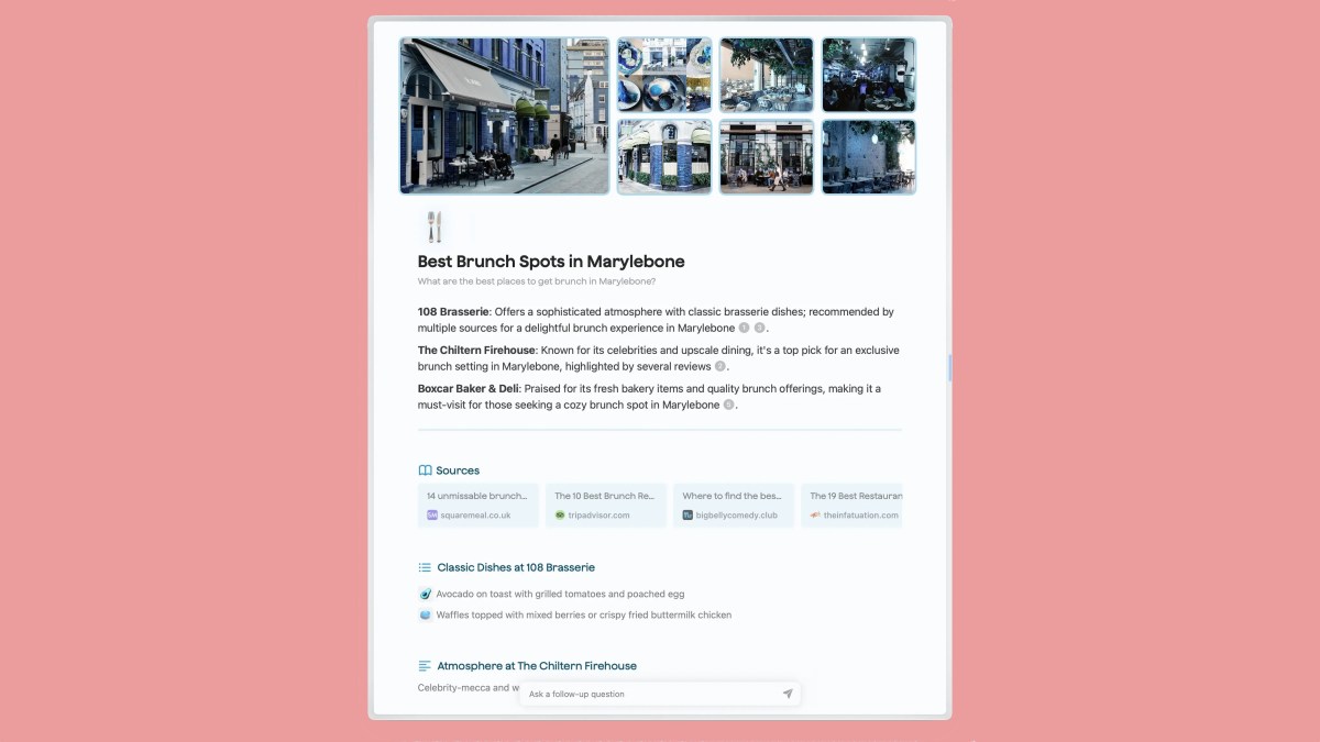 SigmaOS’ marquee feature from this release is called “Look it up.” It browses the web for a given query and makes a summary page out of the information that it finds. This is similar to Arc’s “Browse for me” function, but on desktop. One key differentiator is that users can ask follow-up questions to explore more about the topic.
