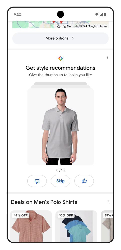 If you haven’t found what you’re looking for, Google will give you the option to rate more items and see even more results. Google will remember your preferences, so if you ever search for men’s polo shirts again, you will see style recommendations based on what you liked in the past.