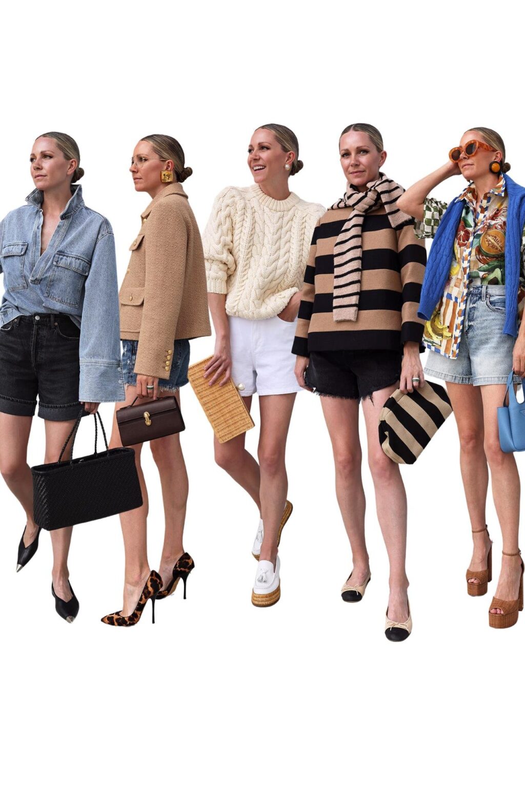 - A variety of cuts and styles. As we all know, different silhouettes and washes work better with different tops. For this reason, I like to have an assortment of denim shorts styles in my closet. I was searching for a mix of lengths, a range of washes, and a variety of cuts – both distressed and clean.