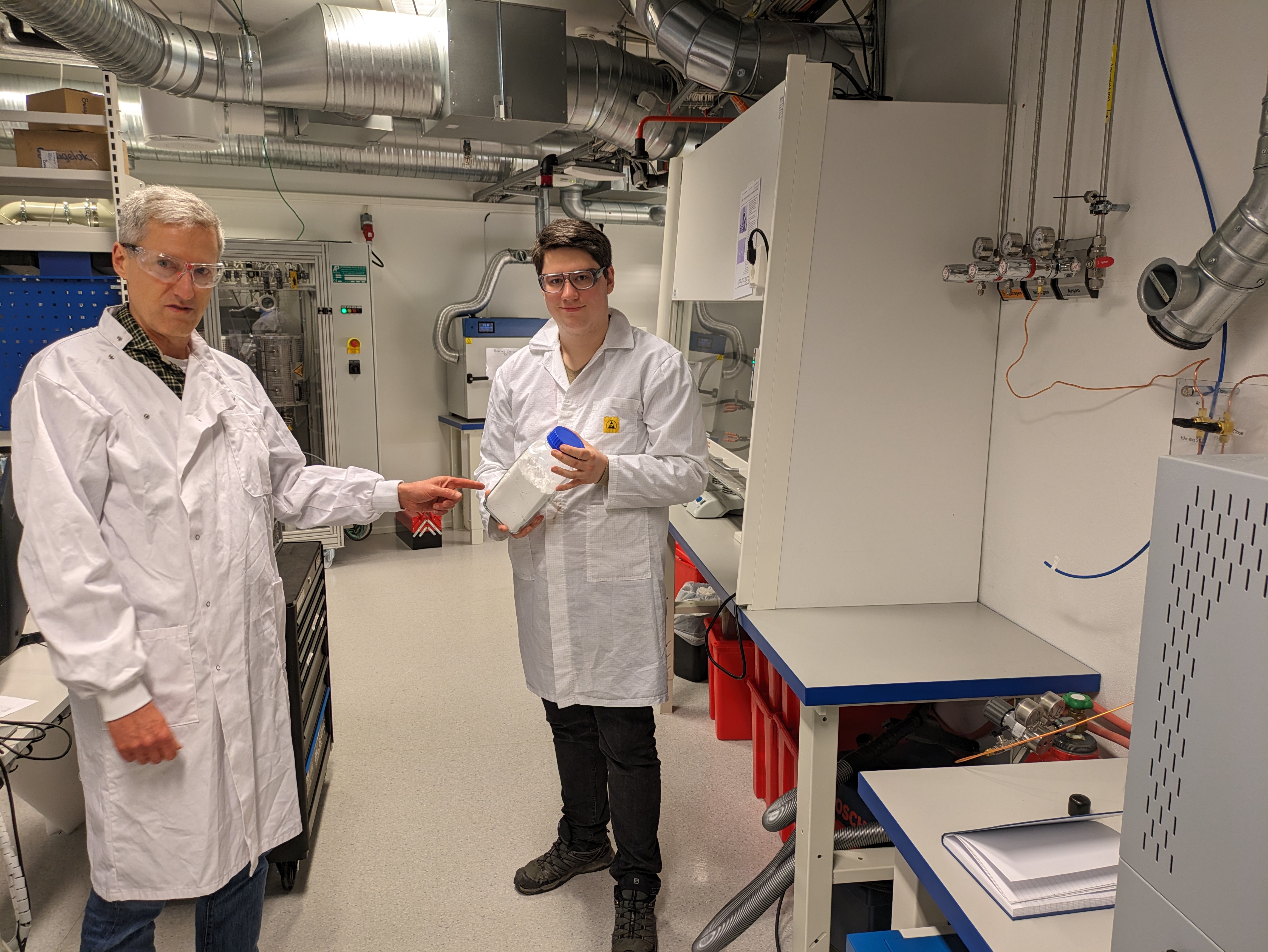 David Gerez, CTO at Photoncycle, and Ole Laugerud, who is a Photoncycle chemist, in Photoncycle’s purpose-built lab, which has been operational for close to two years. Image Credits: Photoncycle
