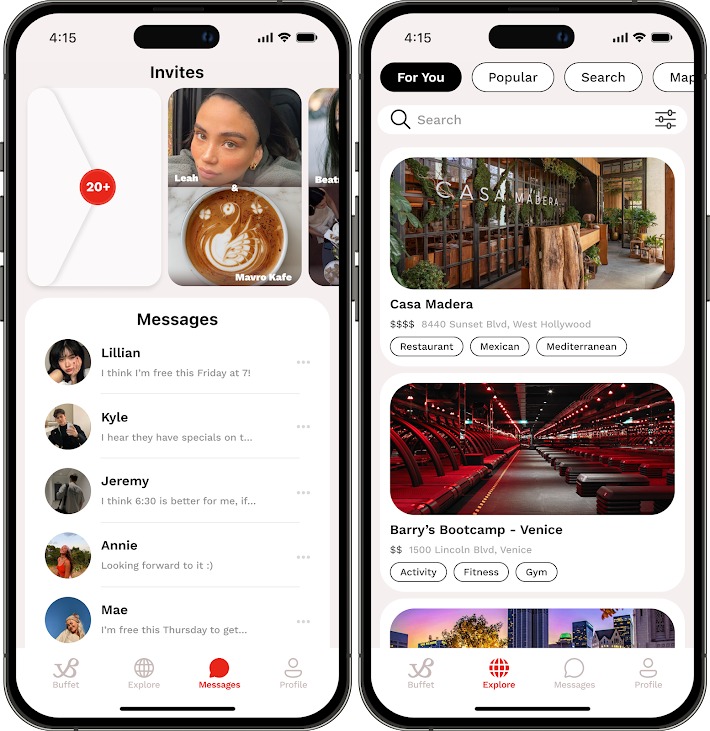 In terms of the app’s business model, Buffet will leverage advertising. The company plans to build up an in-app community forum where local businesses would be able to advertise directly to users and promote happy hours and other discounts.