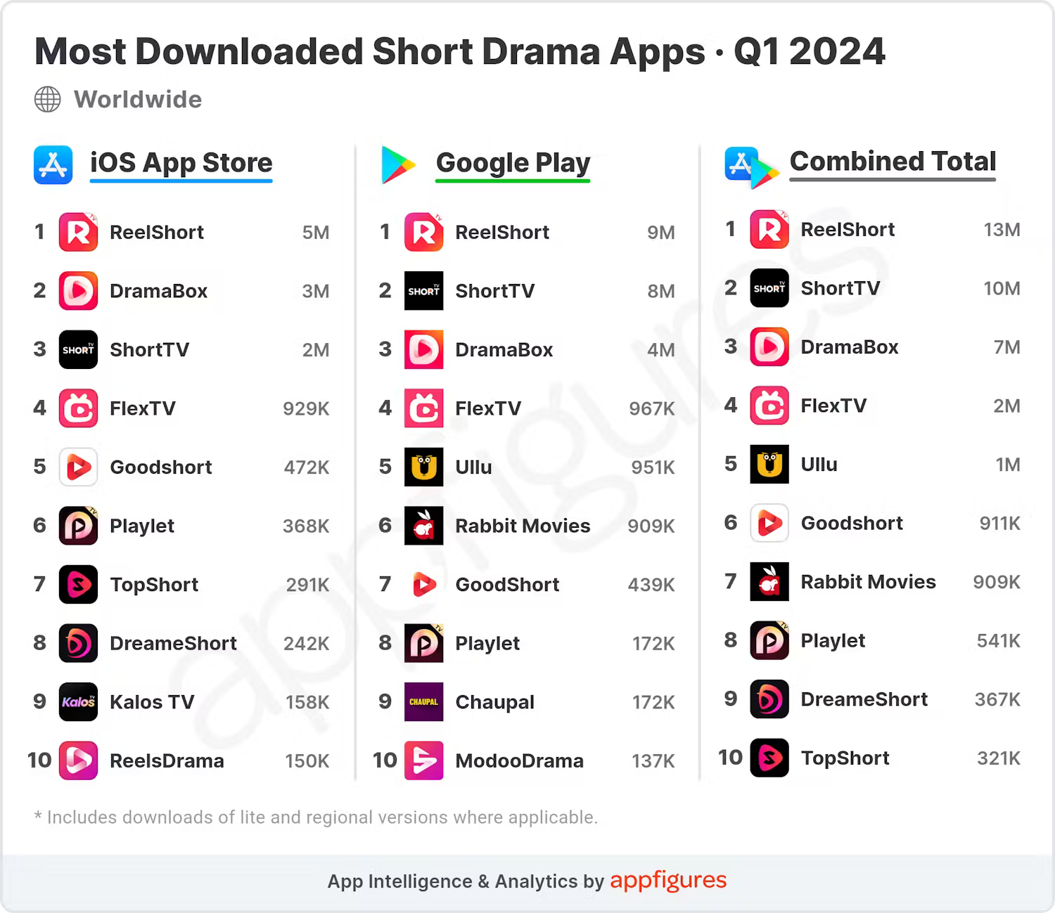 The No. 3 app ShortTV grossed $17 million globally in Q1, or 12% of the total.