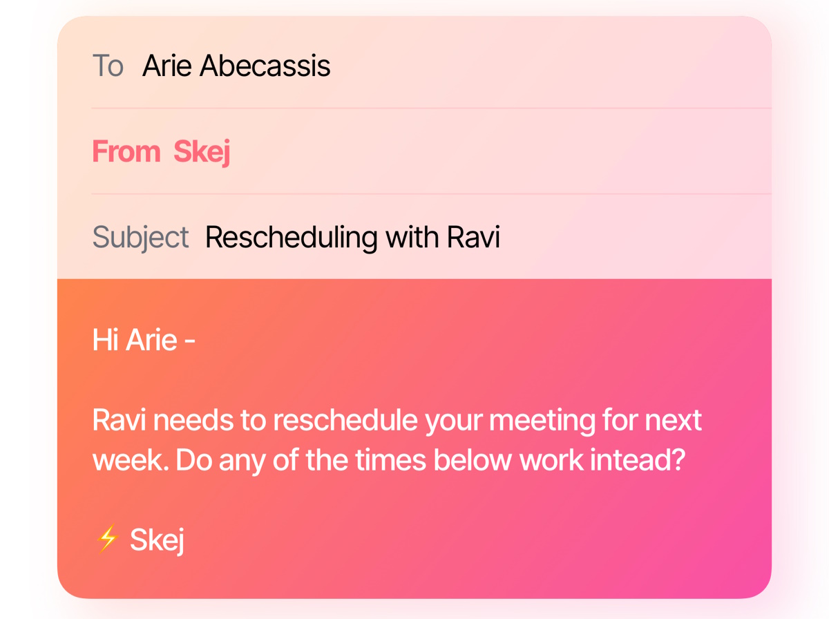 Skej aims to ameliorate the occasionally painful process of finding a meeting time that works for two (or three, or four…) people. You just cc the bot on an email or Slack thread and it’ll start the process of reconciling everyone’s availability and preferences. If it has access to schedules, it’ll check those; if someone says they’d prefer the afternoon if it’s on Thursday, it works with that; you can say some people get priority; and so on. Anyone who works with a skilled executive assistant knows they are irreplaceable, but chances are every EA out there would rather spend less time on tasks that are just a bunch of “How about this? No? How about this?”