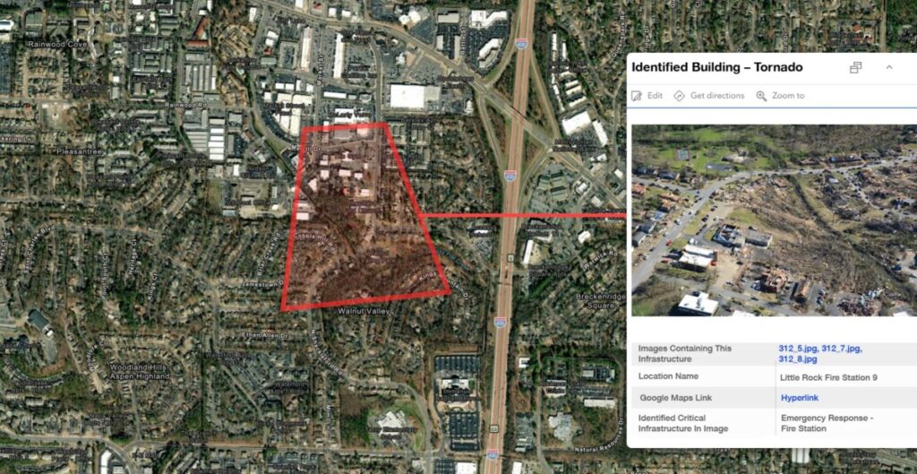 “Right now, our analysts have to spend time sorting through images to find the ones that cover the areas most affected by natural disasters,” the Guard’s Col. Brian McGarry notes. “They then have to correlate those images to surrounding infrastructure, label all the relevant features, and only then can highlight the significant damage and send it forward to first responder teams.”
