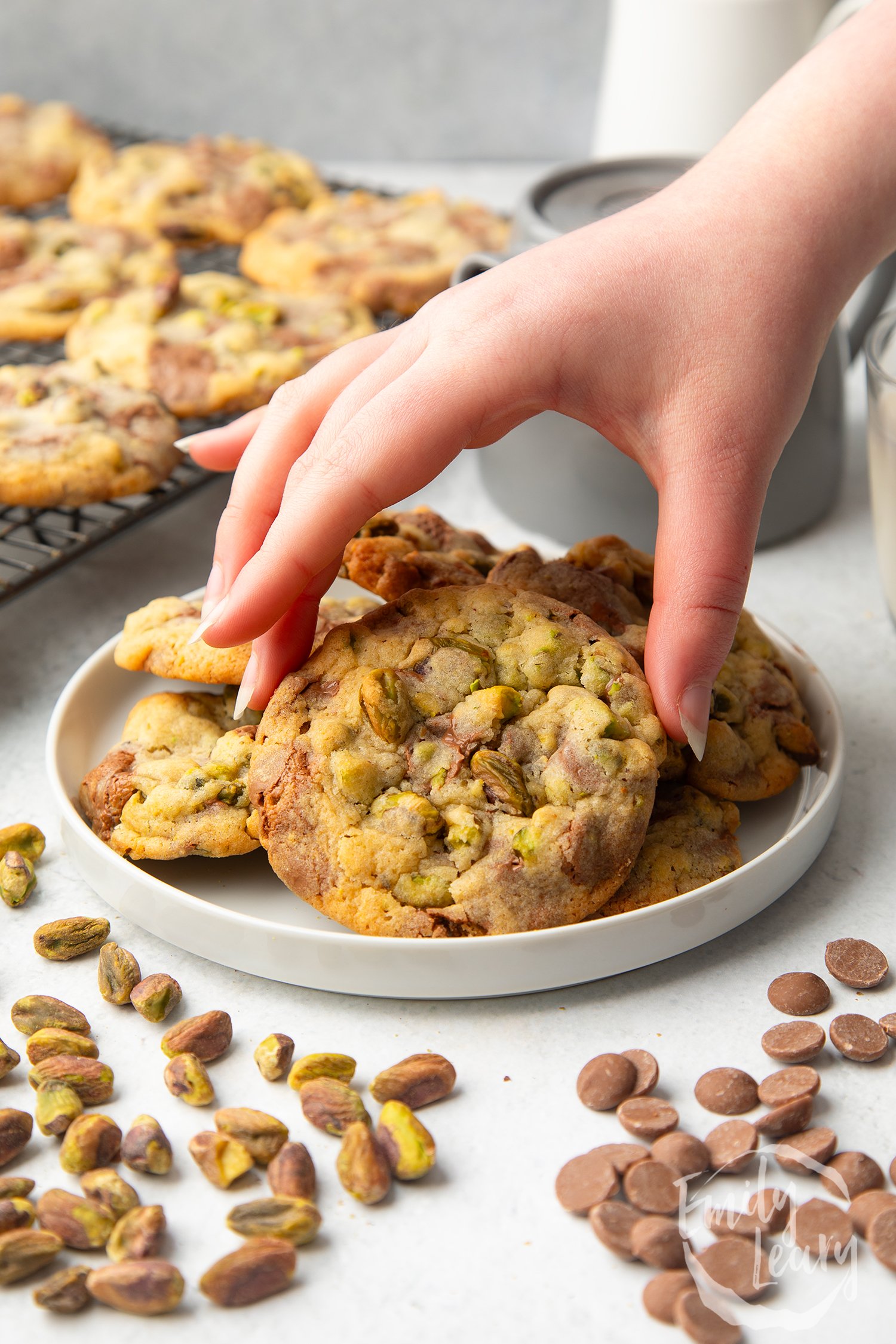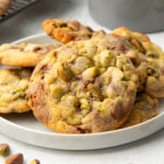 These chocolate pistachio cookies are soft, chewy, and packed with texture and flavour, thanks to golden toasted pistachios and heaps of melty milk chocolate chips.