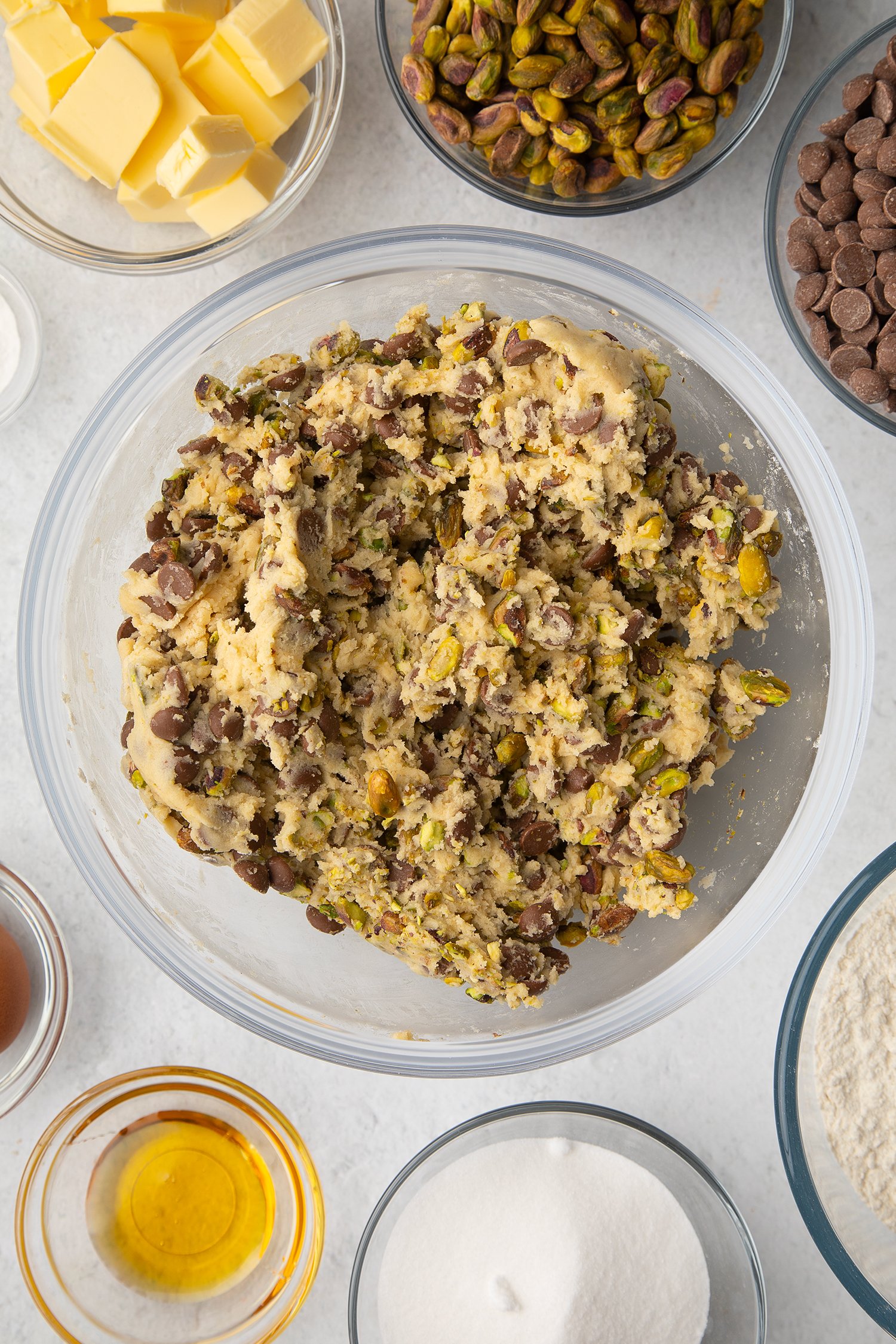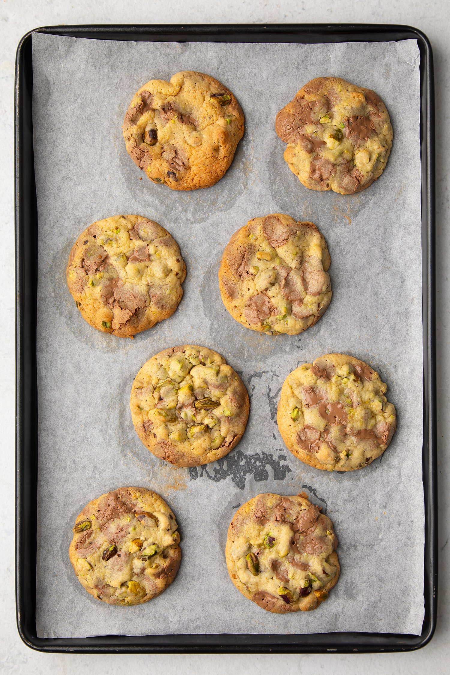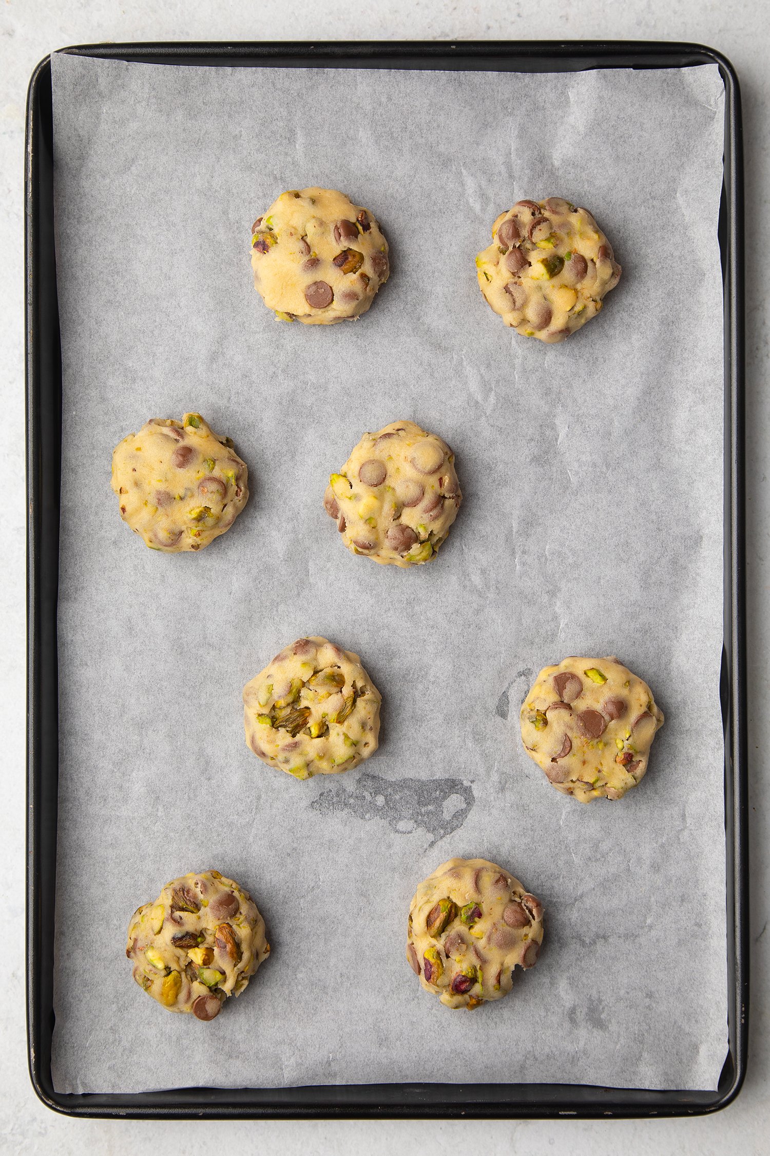 Toasting the pistachios before adding them to the dough isn’t essential, but it does bring out their natural flavour and gives the cookies a satisfying crunch.
