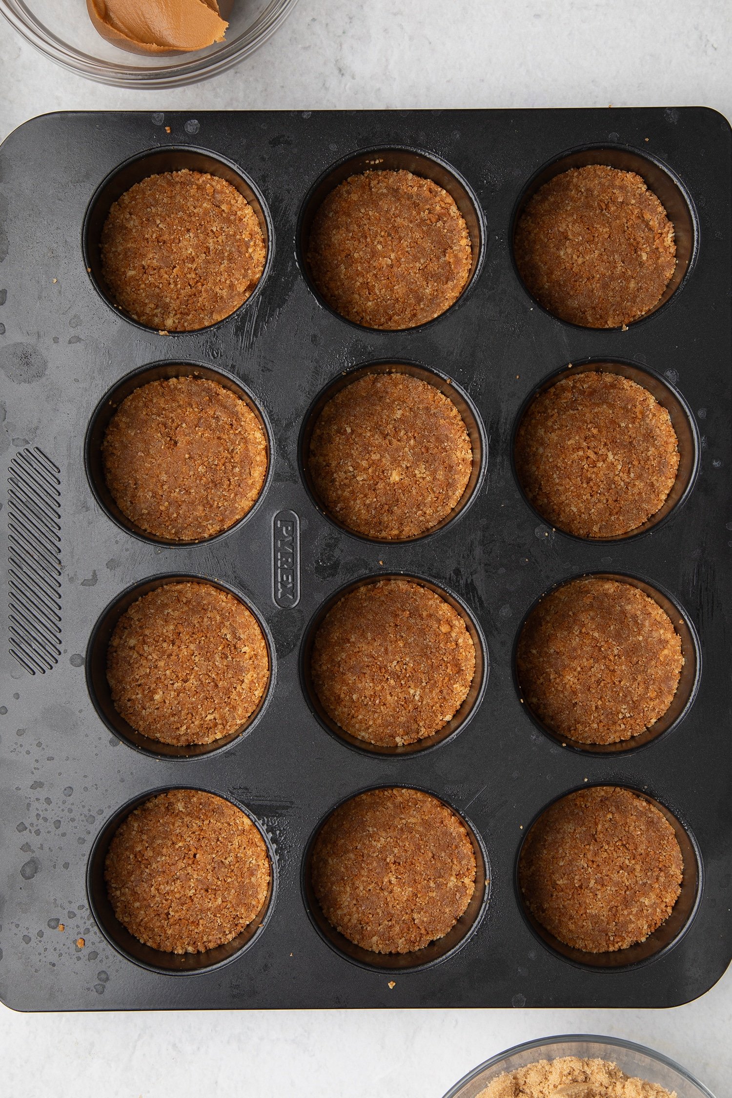 Spoon the mixture into the cases on top of the biscuit bases, to about ½ cm shy of the tops. You might not need all of the mixture.