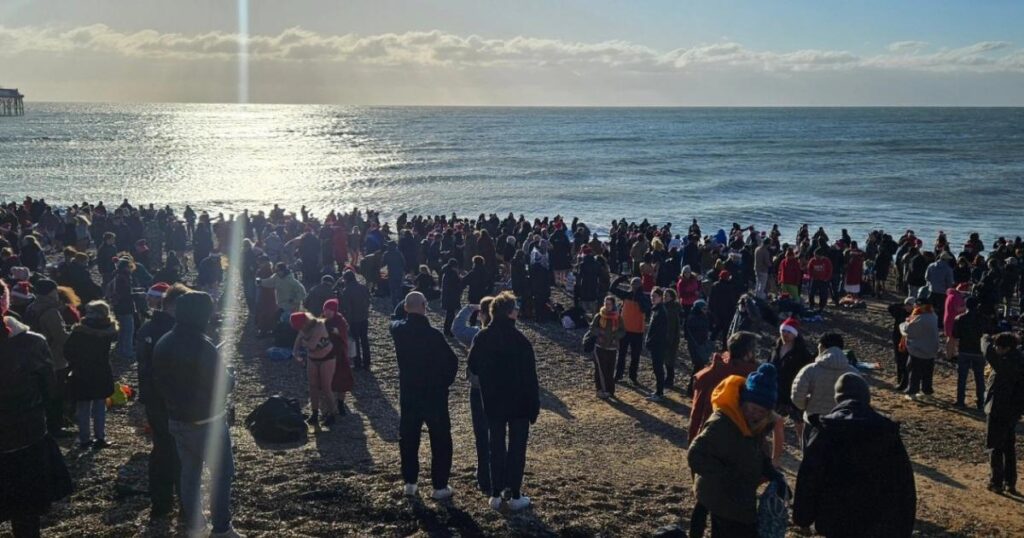 A swarm of people took to Brighton and Hove seafront this morning, December 25, to celebrate Christmas by entering the icy waters.