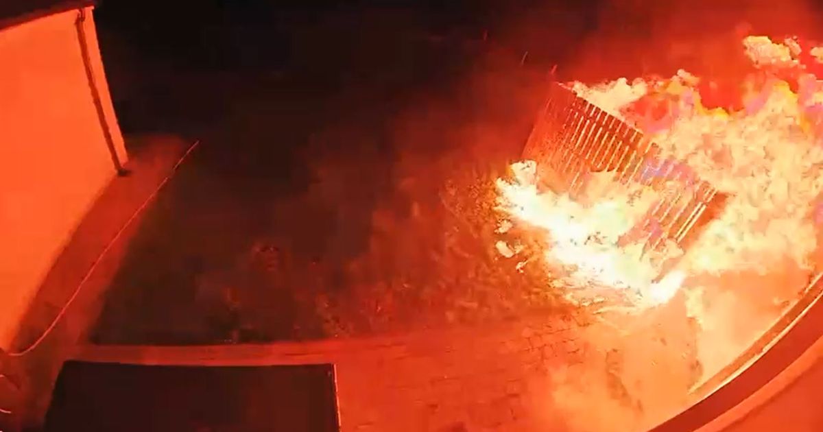 It was then at around 2.45am that her father-in-law Keith was woken by a bang, which was the oil tank exploding after the fire from the bin spread to it.