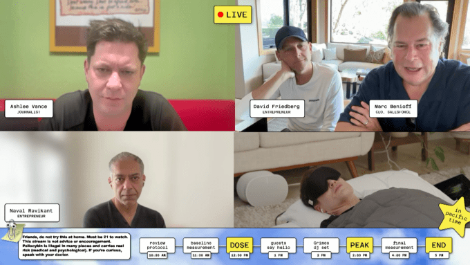 There’s a lot about this situation that’s dumb, but I was most shocked by how boring it was. Johnson got a bit overwhelmed about hosting a livestream while tripping, which is actually very reasonable. So he spent the bulk of the event lying on a twin mattress under a weighted blanket and eye mask in a very beige room. His lineup of several guests still joined the stream and talked to one another, but Johnson did not participate much, since he was in his cocoon. Benioff talked about the Bible. Naval Ravikant called Johnson a one-man FDA. It was a normal Sunday.