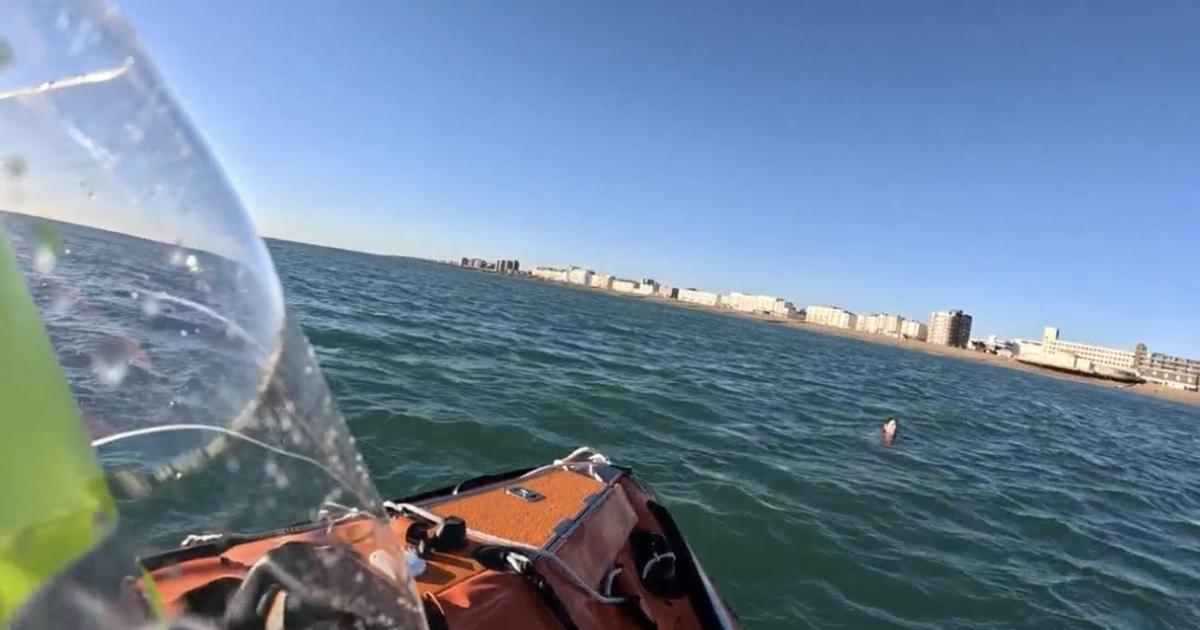 The crew managed to locate the woman, who had drifted west of the pier, and pulled her from the sea into the lifeboat.