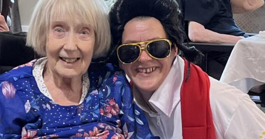Glasgow Four Hills care home resident, Glasgow, with Elvis impersonator (Image: Supplied)