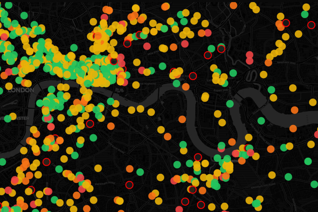 The list can be displayed in the form of a heat-map, with green representing “fine”, yellow “feeling it”, orange “struggling”, red “fucked” and a red outline on a black circle meaning “absolutely fucked”, with rates increasing by more than 200%.